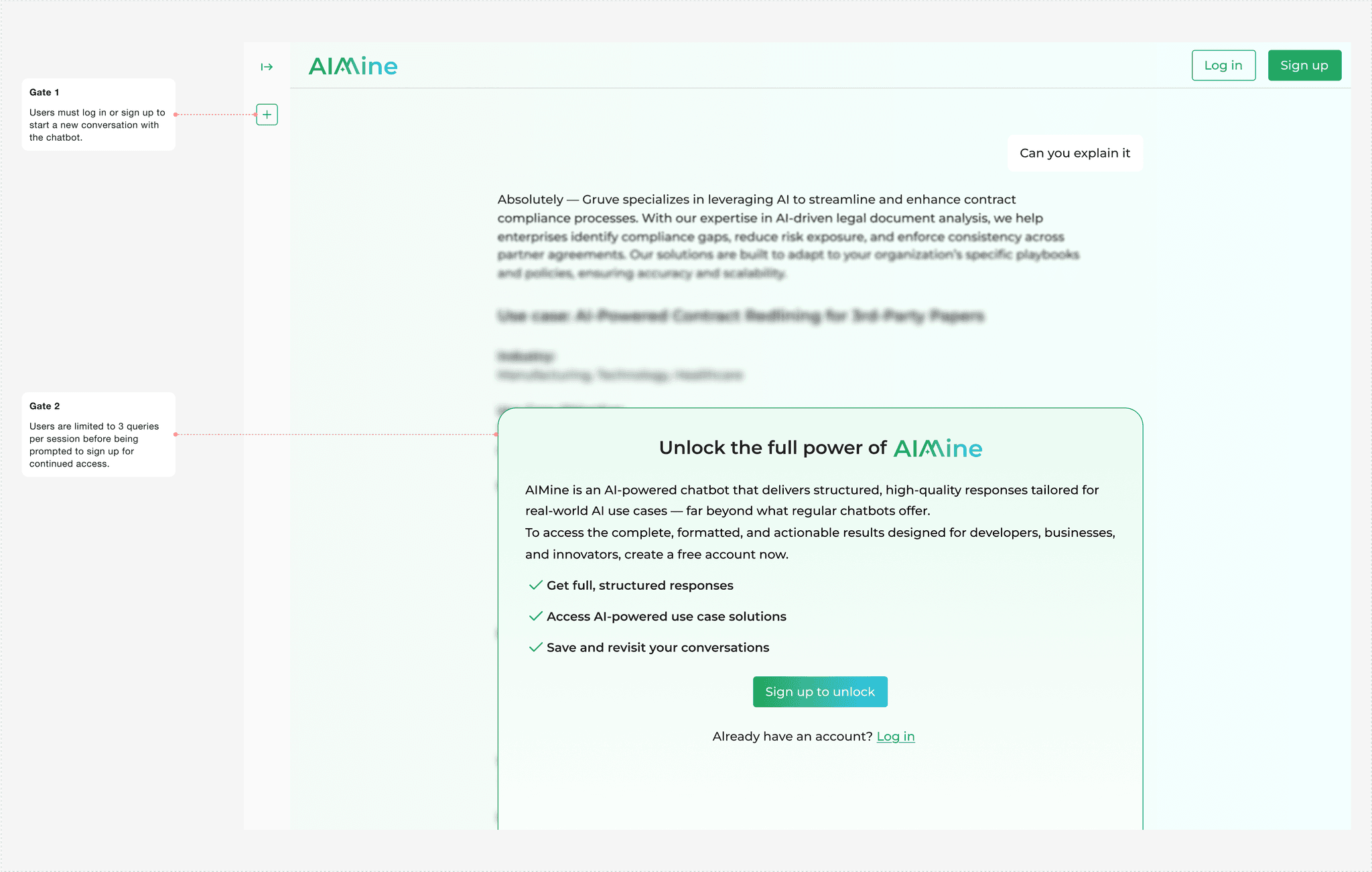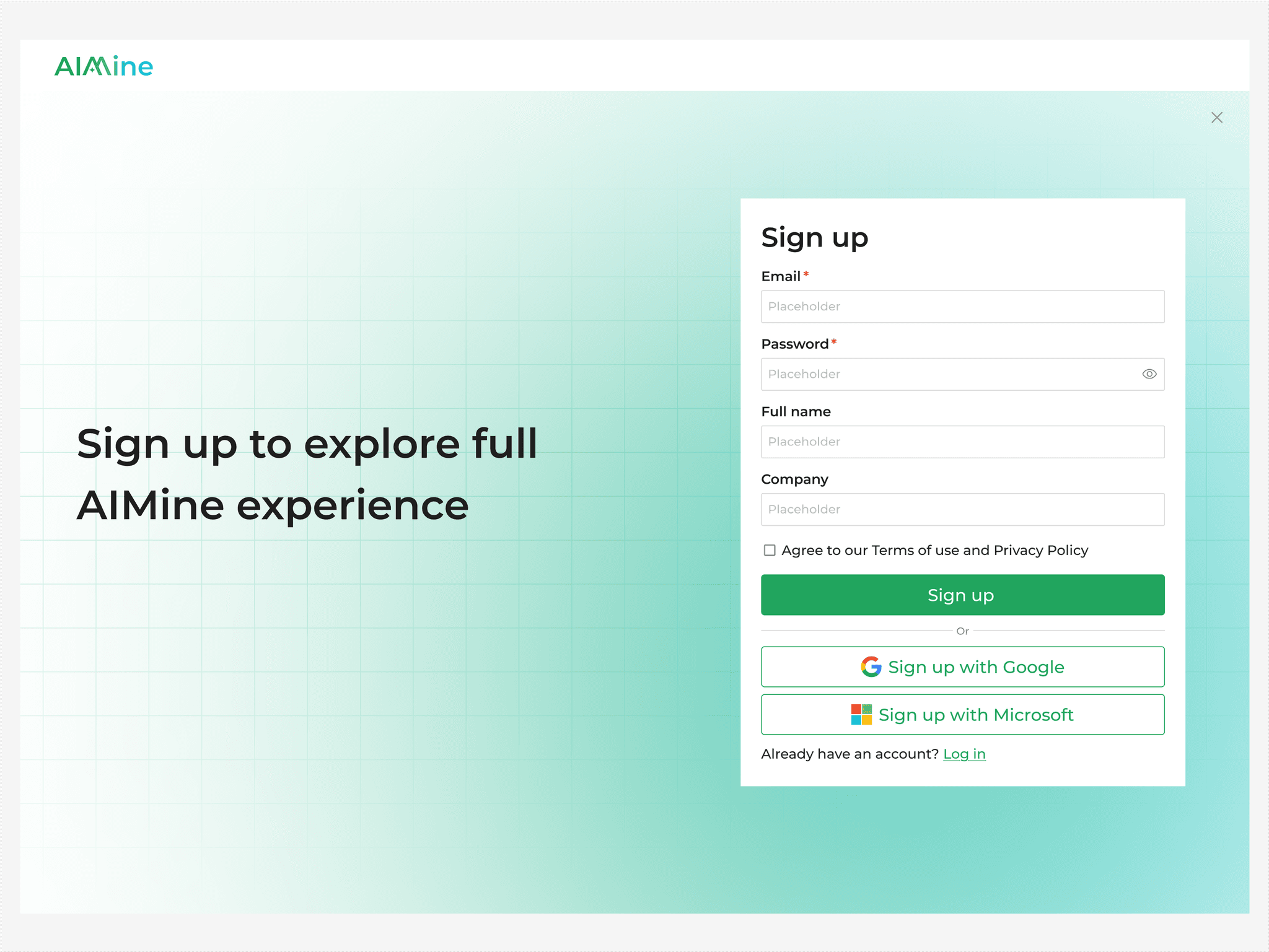 Instead of asking users to only fill out their email, we encourage them to sign up for an account to access the full AIMine experience. This approach offers several benefits: